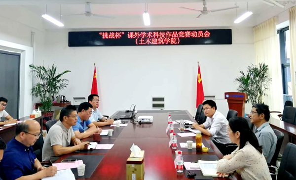 校团委负责人就往届“挑战杯”竞赛组织备战中的经验作了介绍,并对本届竞赛的有关要求进行了解读。土木建筑学院负责人、教师代表、学生代表就项目申报、备赛思路、参赛感悟等进行了交流发言。
