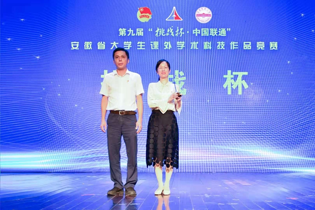 6月21日,第九届“挑战杯”安徽省大学生课外学术科技作品竞赛(俗称“大挑”)颁奖仪式在安庆师范大学举行,我校10件决赛作品全部获奖,其中一等奖8项、二等奖2项,以总分940分位居全省第一,问鼎省级最高荣誉“挑战杯”(全省唯一)。