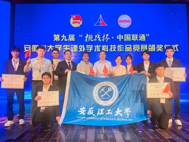 本届省级“挑战杯”赛事共计75所高校10694件作品参与竞争。我校推报的10件作品全部进入终审决赛,入围决赛作品数量刷新了学校历史性纪录,位居参加本次大赛的安徽省高校之最。经终审决赛激烈角逐,我校机械工程学院《综掘工作面迈步式掘锚支协同机器人》《新型交叉带机械卸载式分拣设备》、安全科学与工程学院《胶体泡沫智能化防灭火系统》《一种智能化泡沫除尘系统》、矿业工程学院《云控制智能巡检空气净化系统》、机械工程学院和计算机科学与工程学院联合推报的《煤矿井下六足自主巡检搜救机器人》、人工智能学院《冷凝器清洗机器人》、土木建筑学院《“绿水清风革命”--基于新风量和水泵转速分段控制的中央空调节能系统》8件作品荣获一等奖,材料科学与工程学院《水污染“联合收割机”--“全磁”模块化多污染物水处理系统》和人文社会科学学院《红色传承绿色反哺--安徽革命老区融入长三角一体化的实证调查与策略分析》2件作品荣获二等奖。