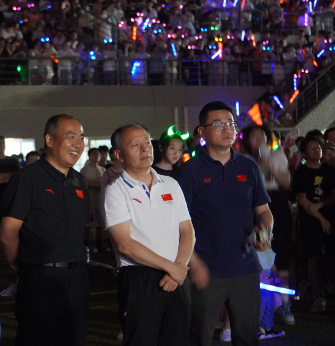郭永存与同学们热情打招呼,向现场同学致以亲切问候,现场同学热烈回应,全场响起雷鸣般的掌声,经久不息,点燃了校园夏日激情,奏响了青春赛道上激荡人心的乐章。