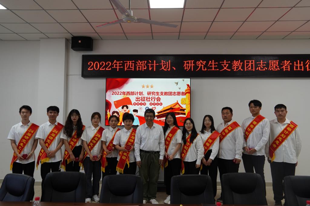 青春喜迎二十大,强国有我西部行。6月15日上午,我校2022年西部计划、研究生支教团志愿者出征壮行会在团委会议室举行。党委常委、副校长董雨,相关职能部门负责人,相关学院党委副书记和辅导员,第24届研究生支教团成员,2022年西部计划志愿者参会。会议由校团委书记程秀霞主持。