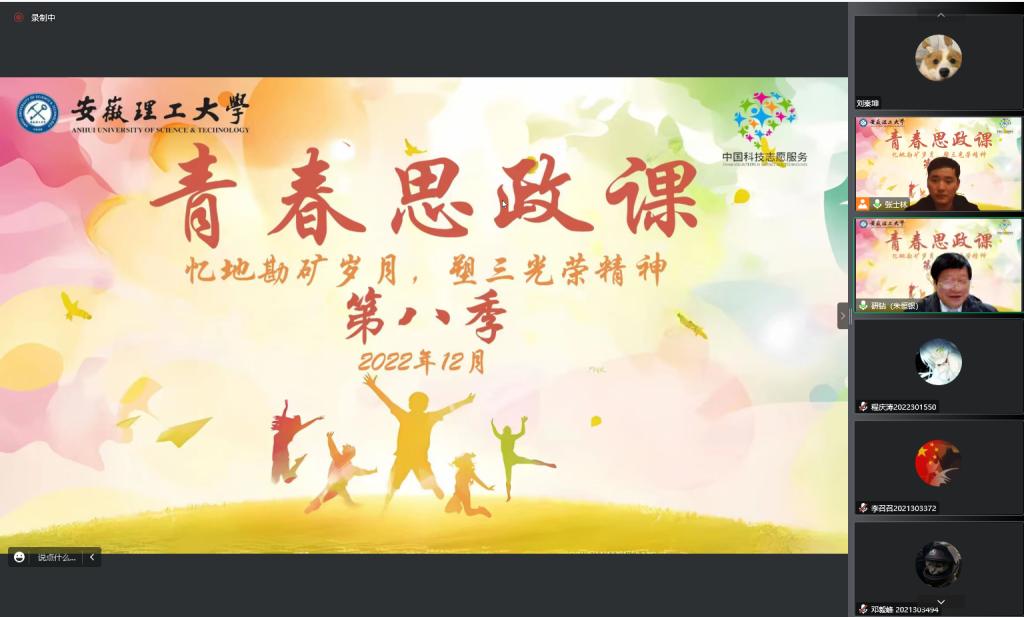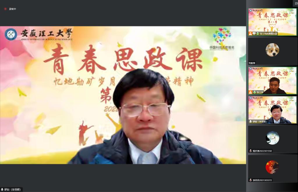 12月15日晚,由校团委主办、地球与环境学院团委承办的第八季青春思政课在线上精彩开讲,本次课程以“忆地勘矿岁月,塑三光荣精神”为主题,邀请到大国工匠、地球与环境学院朱恒银教授为访谈嘉宾,全校300名师生参加了课程。