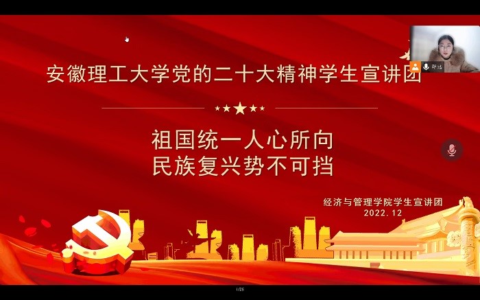 为全面深入学习领会党的二十大精神,扎实推进学习宣传贯彻工作,加强学校共青团思想引领力,近日,校团委组建“党的二十大精神大学生宣讲队”,从各学院和校学生会中选拔招募54名队员,通过腾讯会议平台在全校范围内线上开展了18场次的巡讲活动,受众学生人数4000余人。