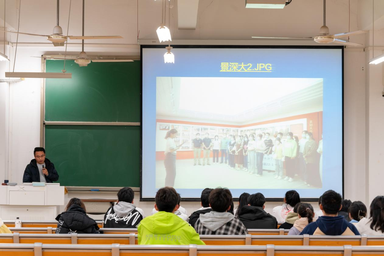 施培松老师从摄影三要素:光圈、快门、感光度来为同学们切入介绍。从相机构成、基础理论、构图、拍摄经验与技巧等方面一一为同学们做了生动详细的讲解,强调无论任何场合,照片拍摄完必须当场检查照片质量。为了大家更加直观地理解,同时分享了自己职业生涯以来拍摄的优秀摄影作品。他告诉大家,照片要有主题、有内容、有思想,最重要的是传递其背后的故事。