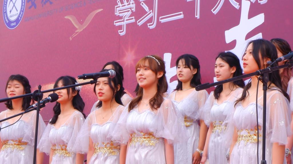 比赛以青春活力、励志昂扬的歌曲为总基调,各学院17支队伍携手登台,用青春最美好的声响唱出新时代安理青年深厚的爱党爱国情怀,《万疆》、《有我》一首首具有时代气息的“新红歌”依次登场。医学院演唱的《紫荆花盛开》结合香港回归祖国26周年“同心创前路,掌握新机遇”的精神,诠释了当代青年对这座城市、对祖国的热爱和对未来的祝福;安全科学与工程学院演唱的《青春畅享》,将新时代青年人的朝气挥洒得淋漓尽致;经济与管理学院演唱的《万疆》通过极具艺术表现的四声部混声合唱,向大家展示了高水平的合唱技巧……歌会在计算机科学与工程学院表演的《向阳而生》中推向高潮,大家纷纷欢呼唱出心中蓬勃的梦想,放飞心中不灭的希望。在全场合唱中,歌会落下帷幕。