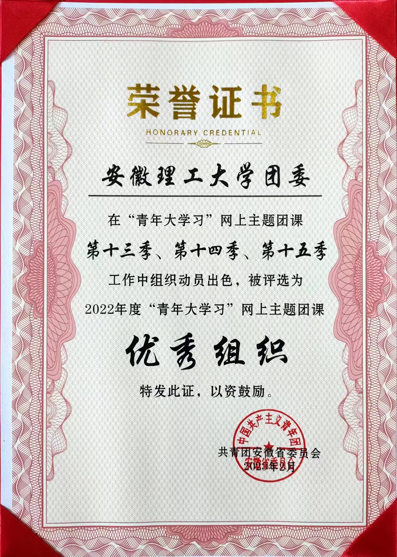 近日,我校“青年大学习”组织动员工作受到团省委表彰,被评选为2022年度“青年大学习”网上主题团课优秀组织奖。