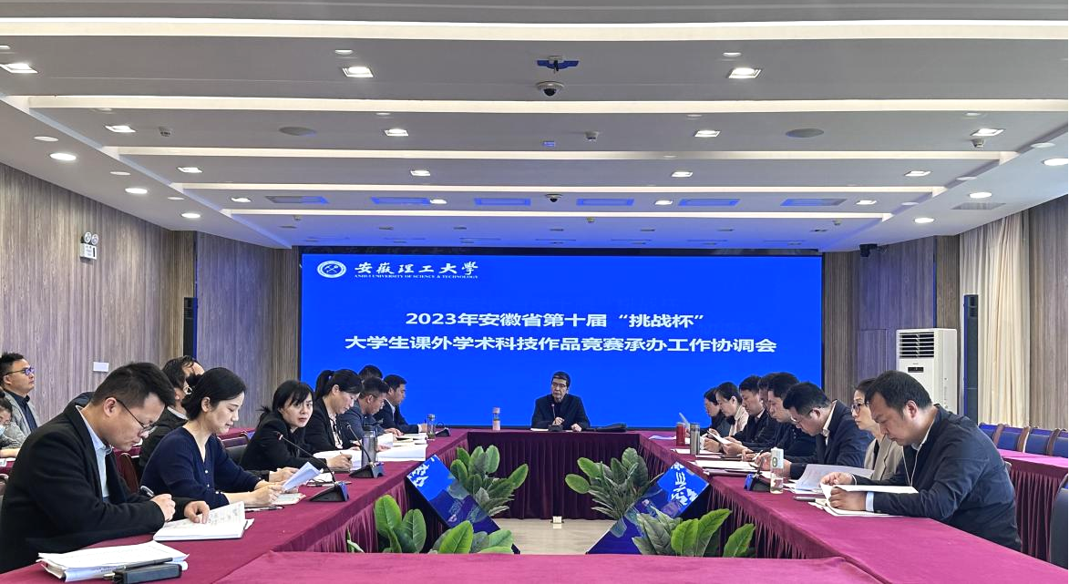 4月27日,学校召开安徽省第十届“挑战杯”大学生课外学术科技作品竞赛承办工作协调会。校党委常委、副校长董雨出席并主持会议,筹备工作组相关成员参加了会议。
