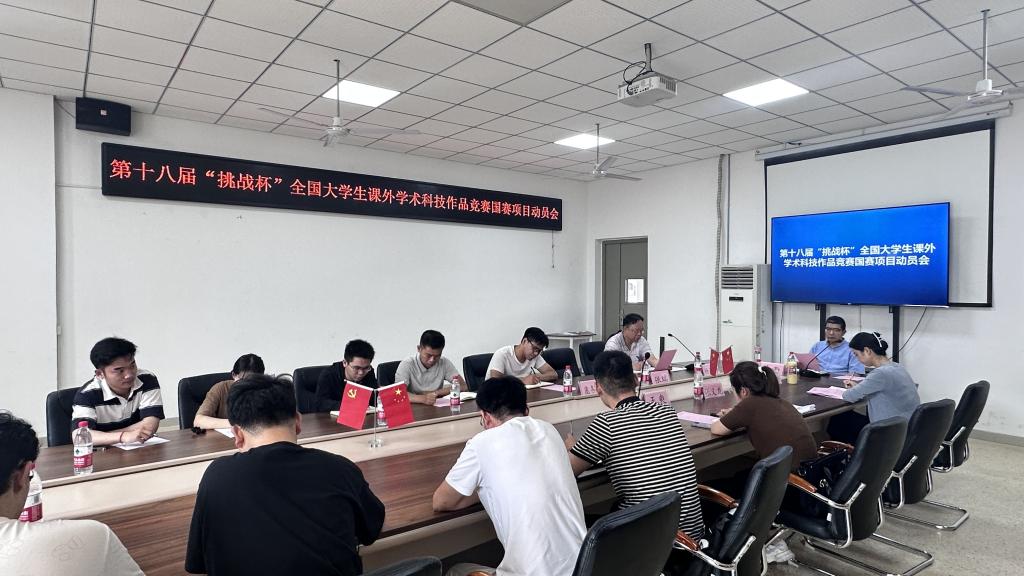 6月20日下午,第十八届“挑战杯”全国大学生课外学术科技作品竞赛国赛项目动员集训会在厚德馆D301会议室召开。副校长董雨出席会议并讲话,6项国赛项目团队成员、指导教师及创新学院等职能部门负责人参加了会议。