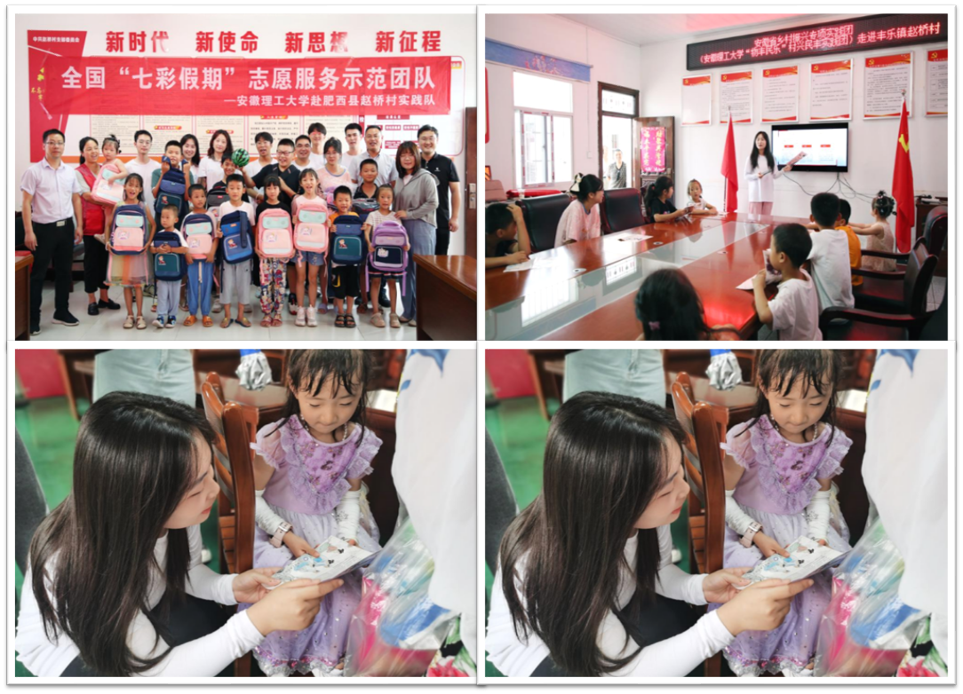 拿起“科普教育”的扩音器,当好“宣讲员”。实践团走进肥西县丰乐镇赵桥村,结合所学专业知识,在当地开展“化学与生活”化学知识普及教育、“珍爱生命,严防溺水”、“爱护眼睛,卫生用眼”、合理使用网络、性教育、心理健康保健等主题宣讲。通过课堂宣讲、观看视频、互动游戏、手工制作等方式,普及科学文化知识,在留守儿童的心里种下科学的种子,提升了村民参与文化建设的主体意识。