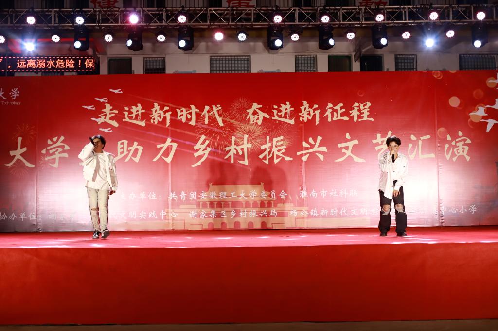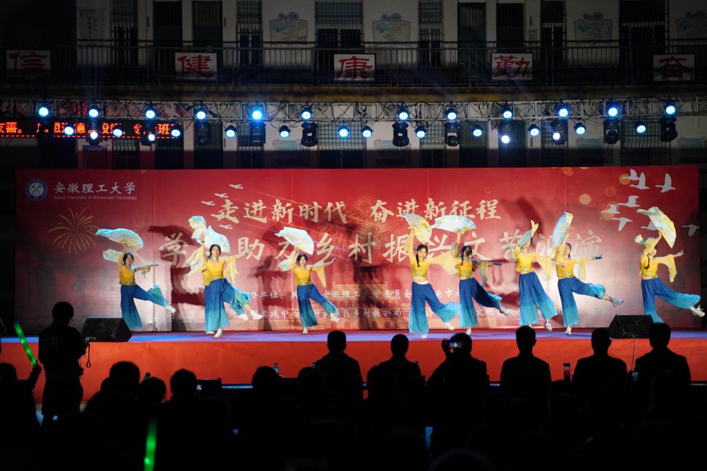 10月15日晚,学校“走进新时代,奋进新征程”大学生助力乡村振兴文艺汇演在淮南市谢家集区杨公镇汤王村精彩上演,以实际行动助力乡村文化振兴。谢家集区副区长王炜,杨公镇相关领导,校团委相关负责人,以及汤王村乡村振兴工作队负责人和村民们一同观看了演出。