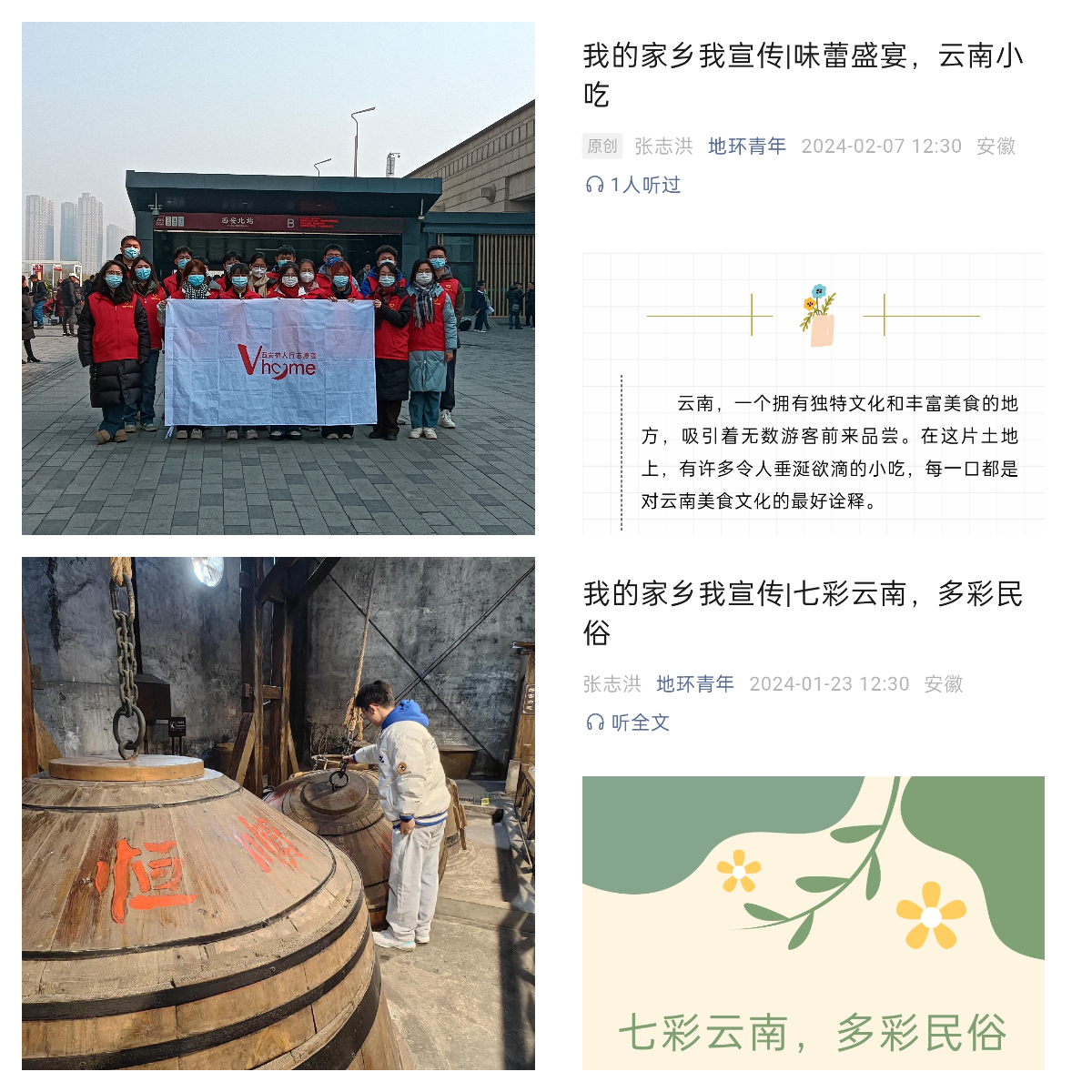 地球与环境学院400余名学生广泛开展家乡宣传、民生调研、科技文化帮扶、社区服务、顶岗见习、挂职锻炼等社会实践和志愿服务活动。以“我的家乡我宣传”为特色主题,同学们走近山西“醋文化”、福建“游神”习俗、金寨红色精神、淠史杭艰苦奋斗精神等地方特色传统文化和革命文化,调研家乡文旅资源,参与文化旅游宣传,推介文旅特色,做新时期中华文化的继承者、传播者、创新者。
