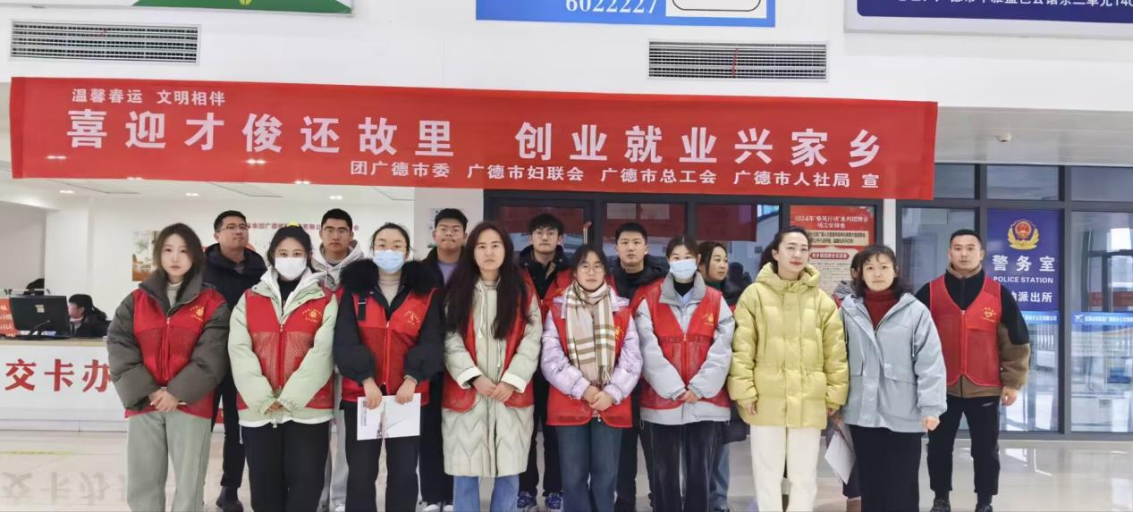 天寒情切,接你还乡。为保障春运期间人民群众平安便捷顺畅出行,充分发挥青年志愿者在春运工作中的重要作用。学院共计近10名志愿者在高铁站、客运站“上岗”,围绕旅客服务、咨询指引、票务协助、交通疏导等群众需求提供志愿服务,为春运工作保驾护航。