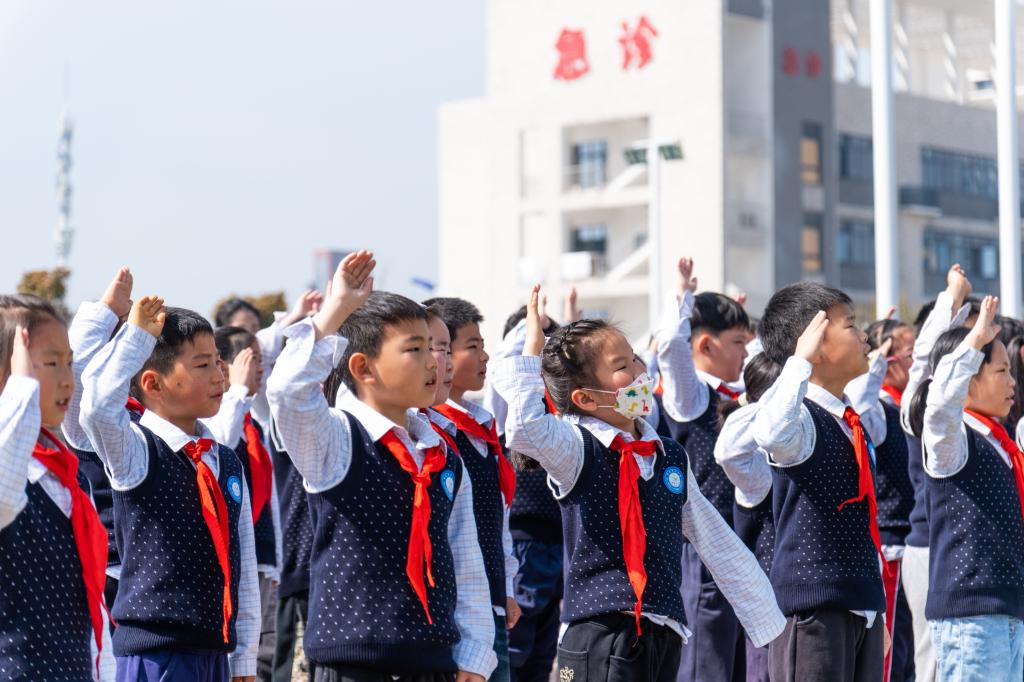 4月1日上午,校国旗护卫队在安理附小开展国旗下的思政课——少先队主题队日活动。总务部主要负责人、校团委主要负责人、附属小学全体师生等300余人参加了活动。