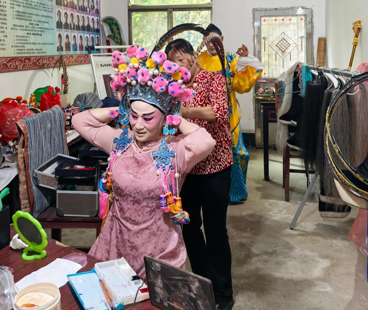 “女将军若问孤王姓名,孤是大宋乾德君……”这一次,西皮、二黄的唱腔不在梨园台上,大别山区深处回荡起最后二十余人的承传。8月19日-21日,安徽理工大学校话剧团京剧溯源——“潜山弹腔”非遗传承调研团来到安徽省安庆市潜山市五庙乡,调研安徽省非物质文化遗产、濒危剧种“潜山弹腔”。