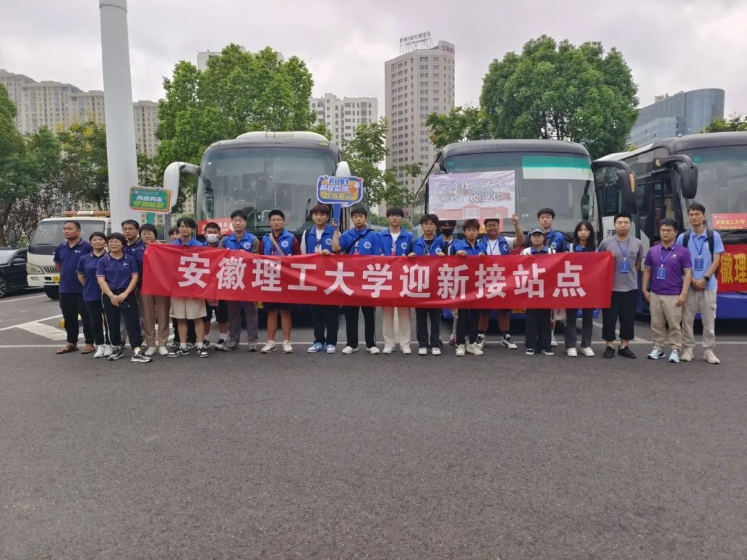 负责合肥校区接站的志愿者早晨5点多就从淮南出发,当清晨的第一缕阳光还未完全洒满校园,迎新志愿者们已早早摆放好物资到达指定岗位,他们着装统一,分布在合肥南站、合肥站、淮南东站、学校南门、北川楼前等十几个迎新站点,耐心等待着第一批新生的到来。