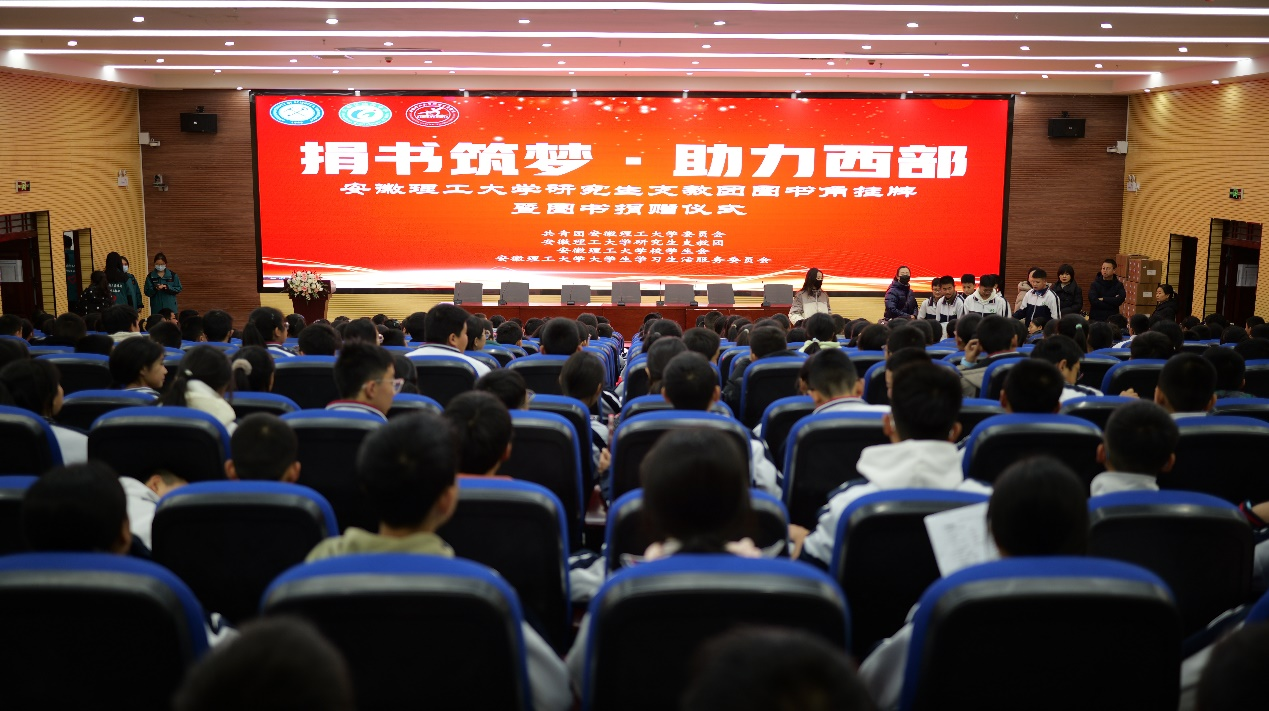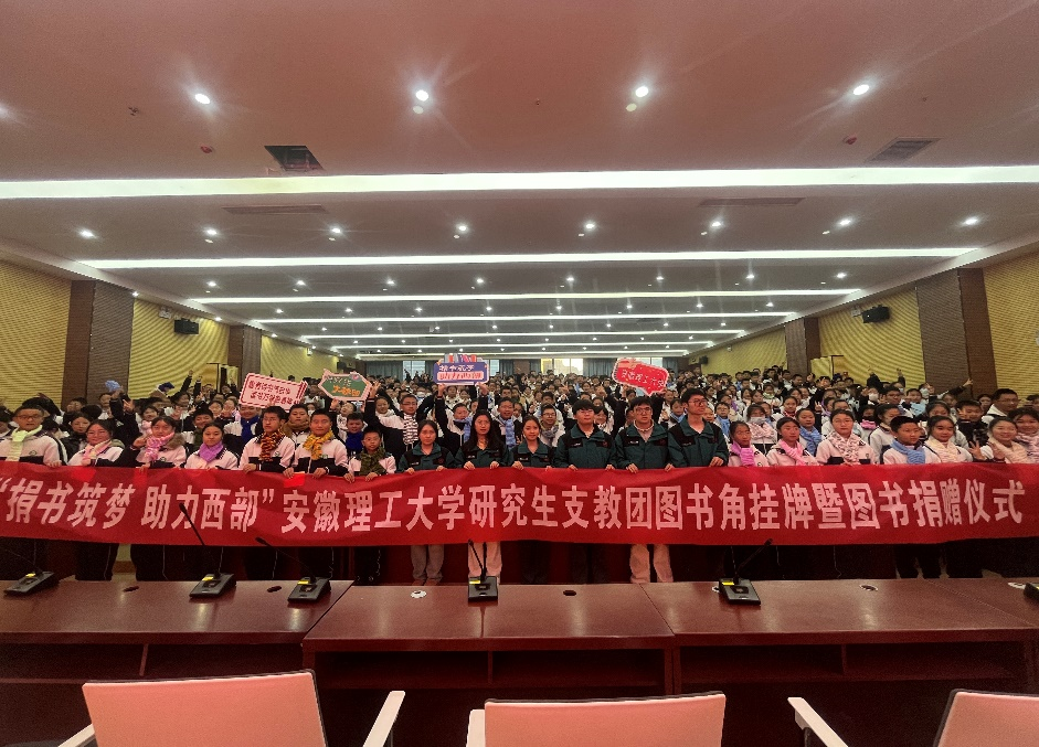 12月31日上午,我校研究生支教团与陇南市武都区城关中学在实验楼九楼会议室举行了“安理蓝空间站”研究生支教团图书角挂牌暨图书捐赠仪式。城关中学党总支副书记、校长曾胜,城关中学教师代表,我校26届研究生支教团成员及城关中学学生代表400余人参加了仪式。