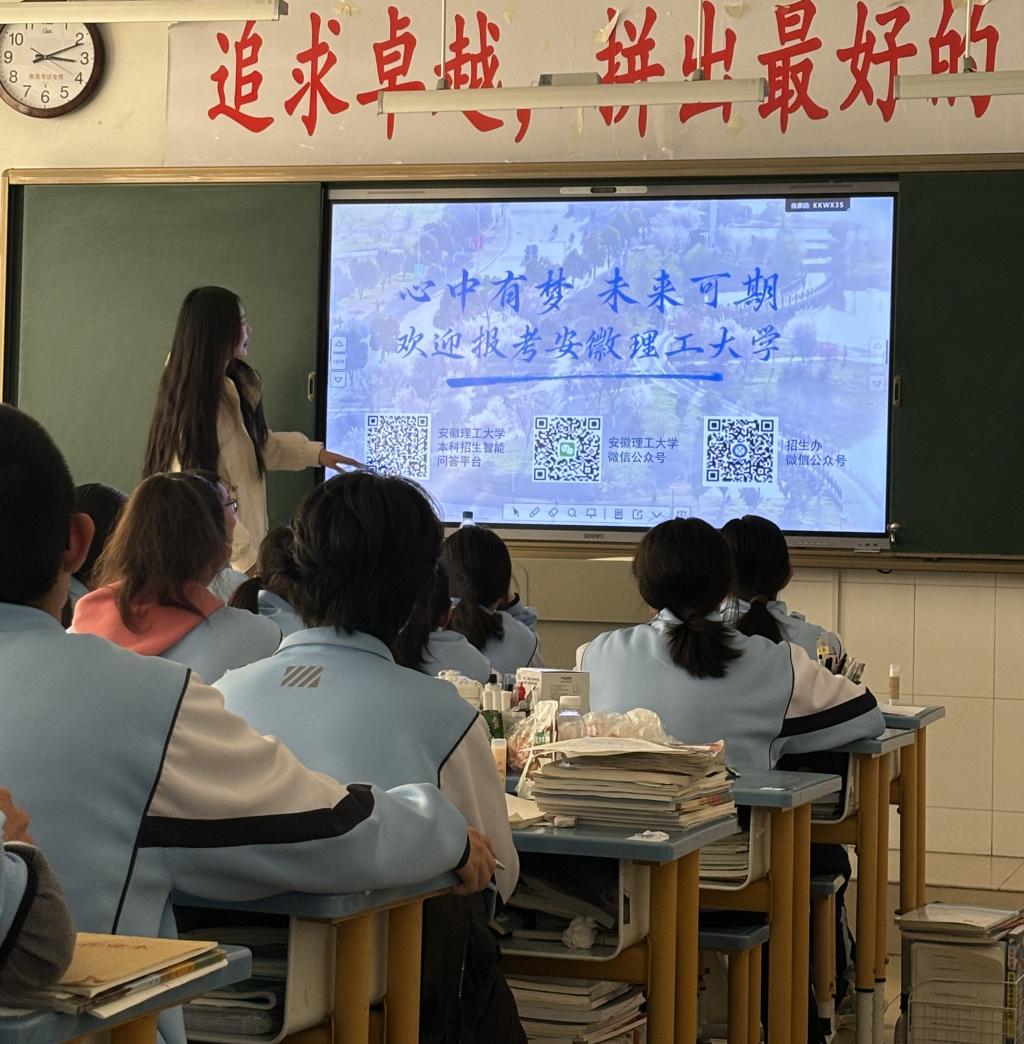 正值学校八十周年校庆,学校启动“我带安理返家乡”招生宣传专项社会实践,来自各学院的200余名学子积极响应号召、参与培训,用自己的力量搭建桥梁,连接梦想与现实,重庆涪陵、山东威海、江西进贤以及安徽全省……他们在全国各地中学展现我校的办学成就和特色,激发高中学生对大学的向往和对我校的报考热情,献礼校庆,逐梦“双一流”。电气与信息工程学院的数十名同学通过精心策划的宣讲活动,生动展现学校的学术成果和特色活动,为安理代言。地球与环境学院、外国语学院、人文社会科学学院的学子们回到高中母校,用专题讲座和咨询答疑的方式,为学弟学妹们描绘出大学的多彩画卷,他们诉说着学校的专业优势和校园文化,分享着“三有三进三到”的办学理念,激发起高中生对未来的憧憬。碳中和科学与工程学院、新能源与智能网联汽车学院的学子们则通过线上线下相结合的方式,将安徽理工大学的温暖传递到更多中学,实现教育帮扶。