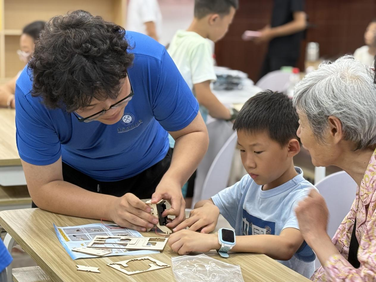 “大家看,这个小模块藏着‘指挥密码’,能让机器人听咱们的话!”在临泉县图书馆,机电工程学院张梦娣老师像变魔术般举起声控机器人套件,指尖轻点零件,耐心地为大家引导。本次“探索机器人世界”科技启蒙活动分两场进行,近百名小学生被机器人模型吸引,迫不及待想开启这场“科学冒险”。教室里科技元素满满,志愿者们展示了家庭清洁机器人“呼呼”转着扫地,手术机器人精准“握”起器械,RM 步兵机器人灵活对战;在动手环节,志愿者手把手带领小朋友分组拼装声控机器人,从连接电路模块到固定外壳,孩子们的探索热情被彻底点燃。