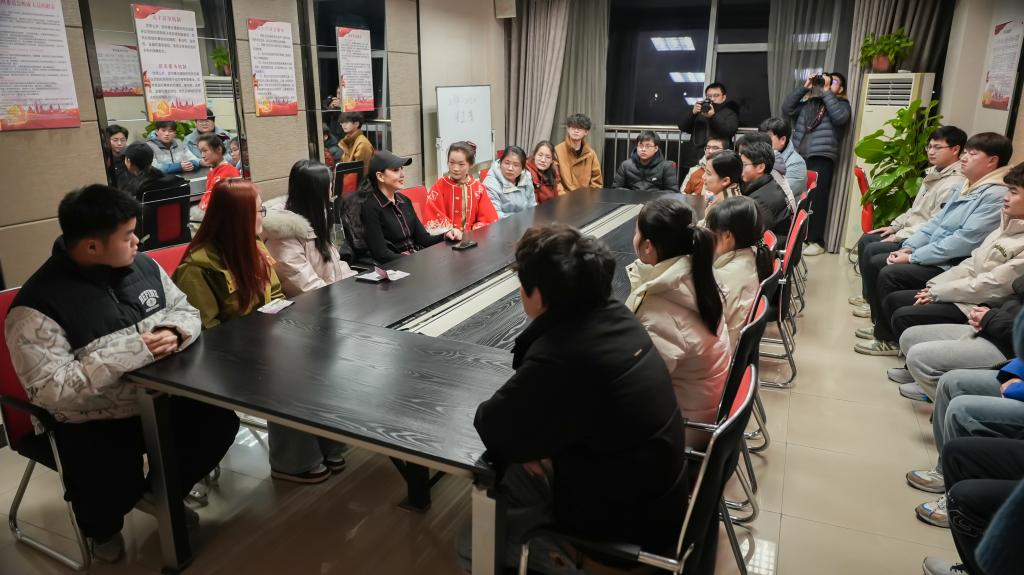 演出落幕,掌声经久不息。韩再芬教授不顾演出疲惫,即刻与25名安理学子围坐一堂,开启了一场温暖而深刻的美育思政课。她结合自身深耕黄梅戏舞台的经历,向学子们解读了中国传统戏曲的精髓,强调传统戏曲不仅是一门表演艺术,更是承载中华优秀传统文化、传递民族精神的重要载体,是中华传统美学的核心所在。黄梅戏的传承与发展,既要守住传统声腔、经典剧目这些“根基”,又要与时俱进、大胆创新,通过创排贴合时代主题的新剧目让传统戏曲与当代社会同频共振。正如《六尺巷宽》所传递的“谦让”精神,在当今社会依然具有强烈的现实意义,能够引导人们正确处理人际关系、化解矛盾分歧,这正是传统戏曲时代价值的生动体现。