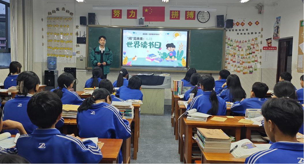 最是书香能致远,阅读之光照成长。在4·23世界读书日到来之际,为营造浓郁校园阅读氛围,引导学生在书香中涵养心灵、启迪智慧。4月20日,我校第27届研究生支教团贵阳分队在息烽县底寨中学,开展“‘阅’见未来”世界读书日主题班会,用文字的力量温暖乡村少年,以书香点亮青春梦想。