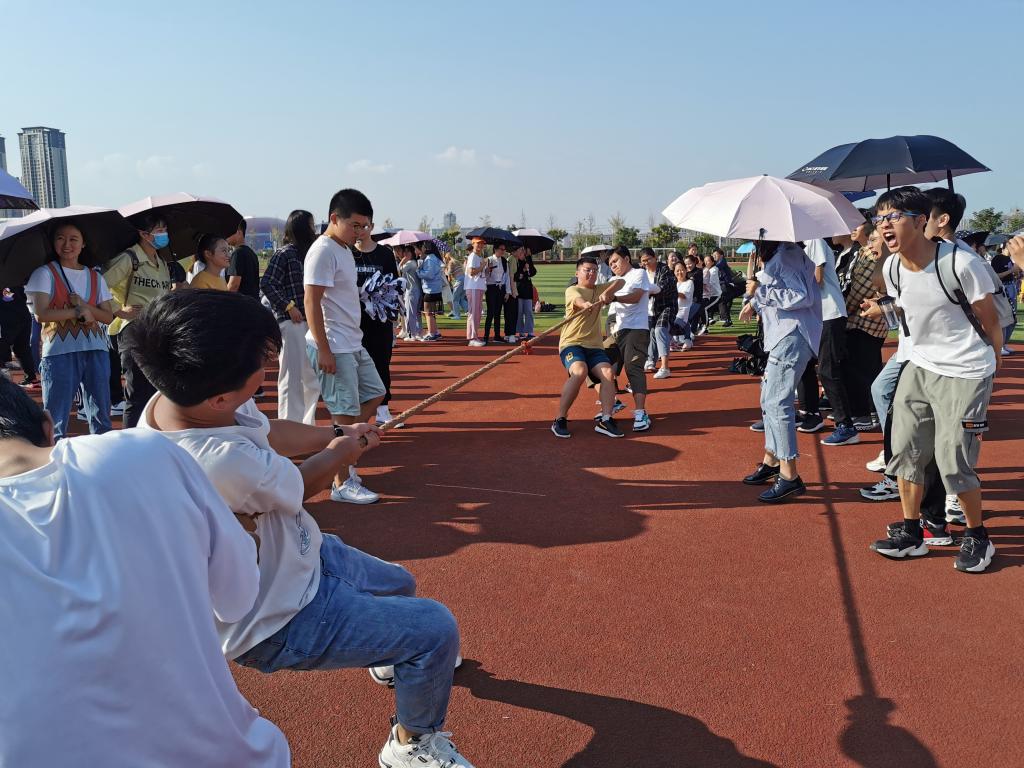 9月19日下午,经济与管理学院于至诚体育场开展了2020级新生拔河比赛,学院2020级全体新生以班级为单位参加比赛,学院2020级辅导员和新生班主任到场观看比赛,并为学生加油。
