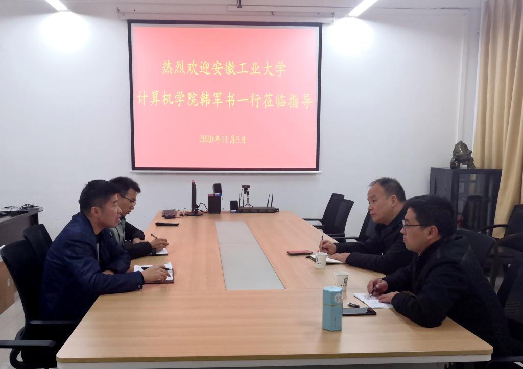 11月5日下午,安徽工业大学计算机学院党委副书记、副院长、纪委书记韩军书一行来我校调研学生工作。计算机学院党委副书记兼行政副院长张旸在求本楼403会议室接待了韩军书一行,并就学生工作展开了深入交流。