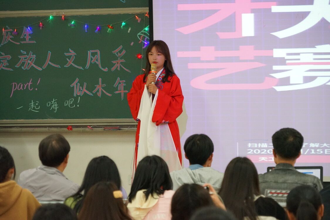 11月15日晚,人文学院在天工201教室举办以“为校庆生,绽放人文风采;才艺大赛,不负青春韶华”为主题的新生才艺大赛,学院党总支书记吴云平,副书记、行政副院长姚嗣宏,团委书记、年级辅导员以及全体2020级新生参加了活动。