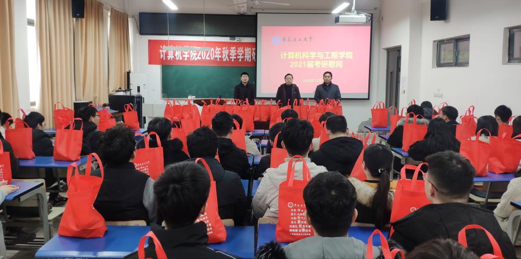 为了鼓励考研同学积极迎考,增强考研信心,舒缓备考压力。12月11日上午,计算机学院在求本楼B401报告厅开展考研学子慰问活动,送上冬日的温暖。学院党委书记王永祥、党委副书记兼行政副院长张旸、业务副院长葛斌、毕业班辅导员和2021届考研学生代表70余人参加了此次慰问活动。
