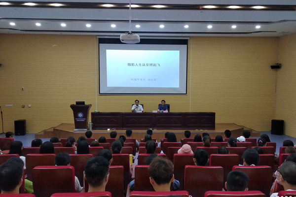 冯东福以《精彩人生从安理起飞》为题,从学院的发展历史介绍开篇,他指出,虽然校园在不断的发展变化,但是“艰苦奋斗、务实奉献”的传统却一直牢牢铭刻在教师和同学们的心中。冯教授分享了自己的学习经验和丰富的阅历,希望同学们对大学的学习生活进行积极的展望和详细的规划,鼓励同学们在大学勤奋学习,培养自信、勇敢、细心、耐心、进取心等优秀品质,打破固有思维,构建创新思维,发展自己的兴趣爱好。会上,同学们和校友进行了交流,也分享了个人的入学印象和初步规划。