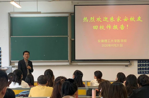 9月21日,医学院在明理楼北108教室举办了知名校友朱家安励志报告会。医学院院长张荣波主持报告会,全体近200名学生参加了报告会。