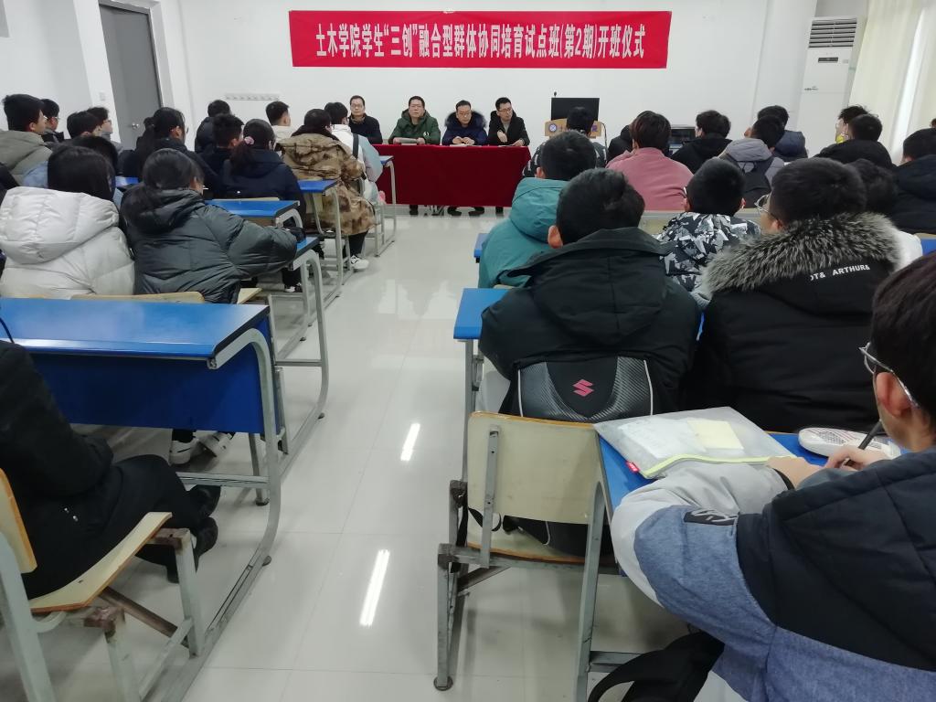 12月31日,安徽理工大学土木建筑学院“三创融合”群体培育试点班(第2期)正式开班,并在求是楼227教室举行开班仪式。学院党委副书记赵军、辅导员和试点班学员参加了仪式。