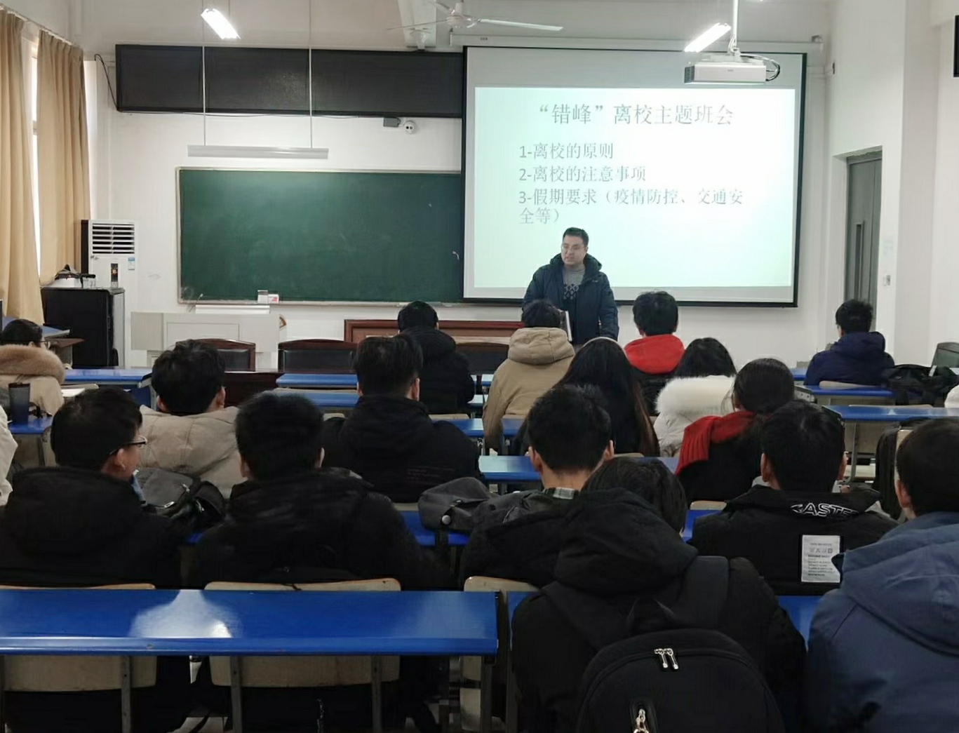 1月11日中午,各年级辅导员召开假期安全专题教育班会,重点强调了疫情防控、人身安全、交通安全、网络安全和食品安全,防电信诈骗等注意事项,提醒同学们要提高安全警惕,教育学生在寒假居家期间,合理安排假期时间,做好假期学习规划,每日按时填写健康打卡信息,始终保持积极健康的良好心态。