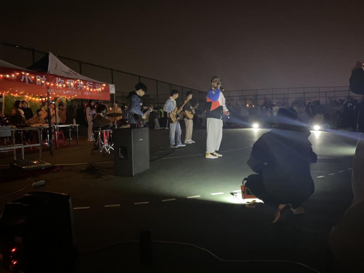 伴随着3,2,1....熄灯的口号,活动准时开始。随即操场上乐队声起,一场草地音乐会拉开帷幕,一首首激情的演奏温暖了初春微凉的夜空。演奏表演完毕接着是独唱,歌手的演唱深情婉转,诉说天空本来的颜色。活力四射的舞蹈将活动推向了高潮,最后是互动小游戏环节,师生在欢声笑语中度过了这特殊的一小时。