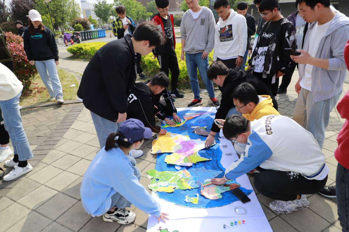 4月22日上午地球与环境学院在图书馆前广场开展“世界地图我来画”地球日科普活动。