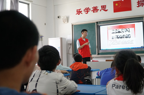 志愿者们围绕党的初心、党的使命、党的英雄人物等主题,以党史小故事的形式,精心准备课件,为小学生们呈现了一堂生动的党史教育课。通过图文并茂讲解、现场竞答互动等形式,激发小学生们学习党史的兴趣。每当幕布上呈现一张张珍贵的照片、志愿者讲述一个个感人的故事时,都会深深吸引着每一位小学生,一双双炯炯有神的眼睛闪烁着他们内心的爱党爱国之情。
