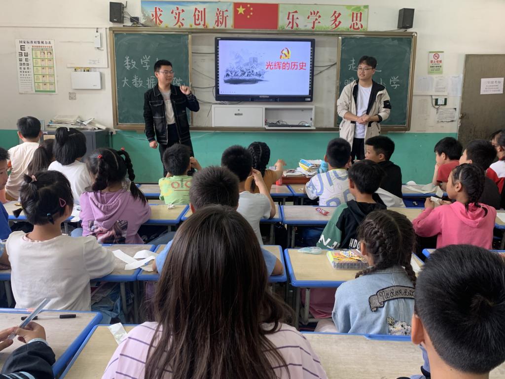 为庆祝中国共产党成立100周年,推动党史学习教育走进小学校园,深入基层、深入人心。5月14日,数大学院组织学生党员前往明德小学开展了“传承红色基因 党史教育进小学课堂”的主题教育活动 。