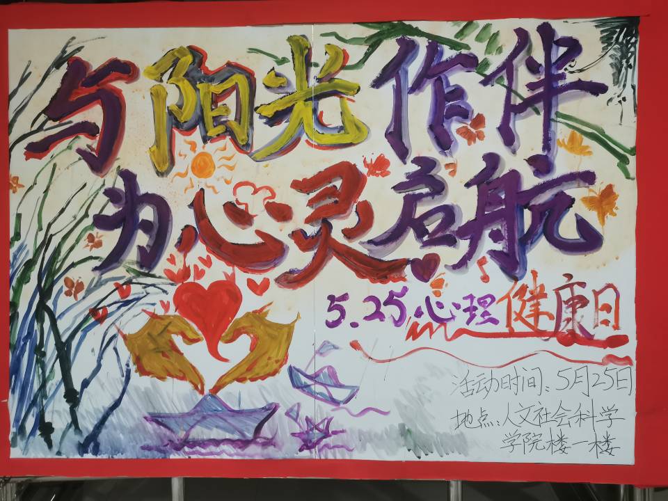 为宣传心理健康知识,进一步排查心理危机,深化学院学生心理健康教育,提高学生心理素质和行为应对能力,5月6日至6月6日,学院在全院范围内开展了以“与阳光作伴,为心灵护航”为主题的心理健康节系列教育活动。