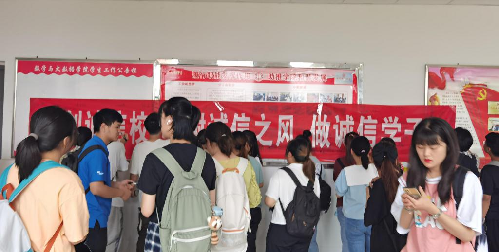 为响应学校号召,落实文件《关于开展2021年学生资助诚信教育主题活动的通知》,不断塑造大学生的诚信与感恩品质,进一步推进大学生思想政治教育工作,促进各项资助政策的充分宣传和有效落实,2021年5月---6月,数大学院结合大学生核心素质培养与实际工作,围绕资助管理制度与政策普及、毕业生诚信还款和诚信教育等主题,以线上和线下结合的形式开展诚信教育系列活动。