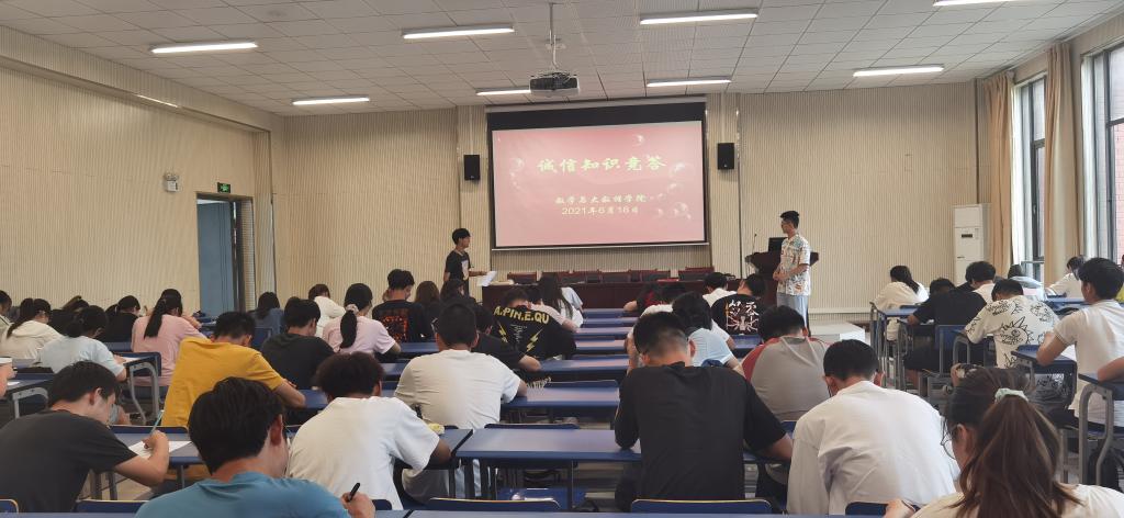学院积极开展诚信知识竞答,同学们积极参与,数大学院共百余名同学参赛,最终应统20-1班李超繁等3名同学获得一等奖,6名同学获得二等奖,12名同学获得三等奖。