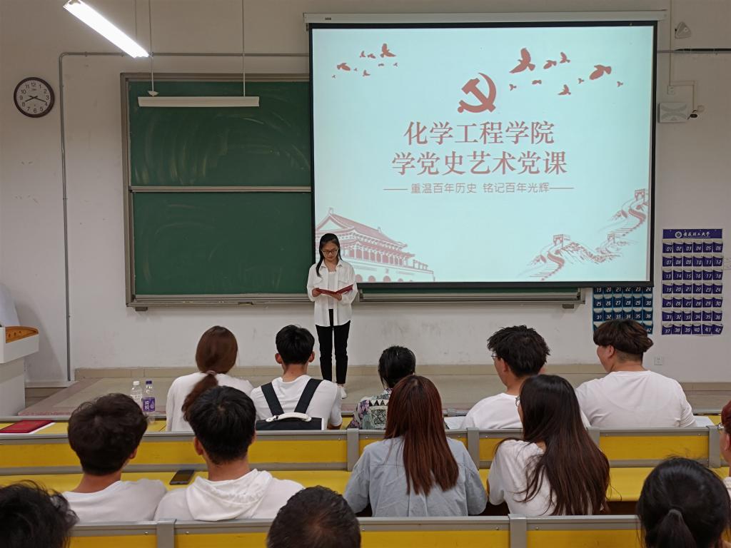 7月8日,化工学院于明理北214教室开展了学党史艺术党课活动,来自学院各年级共一百余名同学聆听了这堂特殊的党史课。