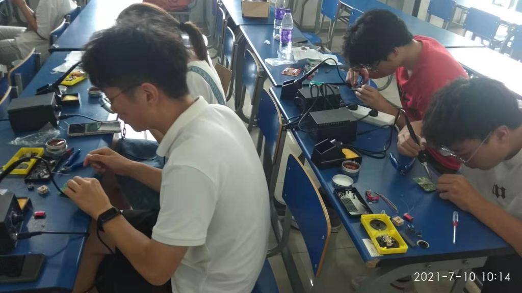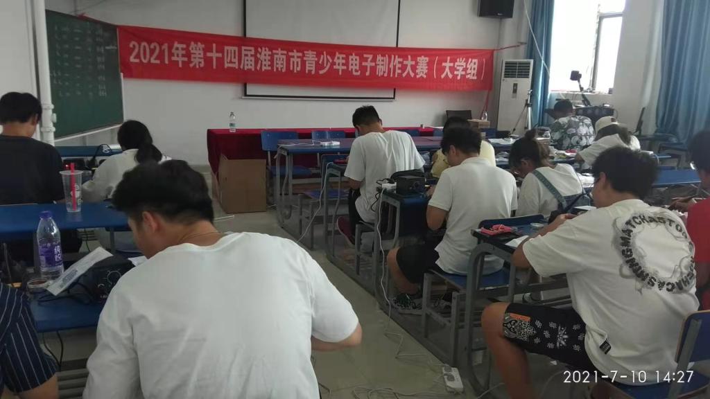 据悉,为了更好的提升同学们的参赛水平,学院于7月10日邀请淮南市田家庵区科协主席胡斌在学院北512报告厅对参赛学生进行了电子制作培训。