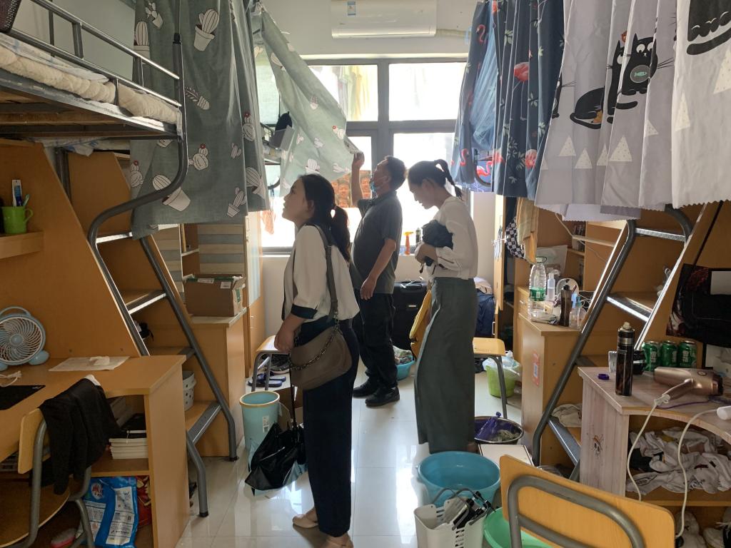 此次检查除了对学生放假前宿舍内卫生方面进行排查,更重要的是对宿舍安全隐患的监督,着重排查学生是否违反校规使用大功率电器、宿舍防火防盗措施是否到位等一系列可能出现的问题。学院一行认真细致地落实检查工作,不放过每个死角。学院领导与未离校的同学们亲切交谈,询问回家时间和乘车情况,嘱咐学生路途要做好个人防护,离开学校前打扫好宿舍卫生、关好门窗、切断电源,并注意返家后不聚集,减少非必需的外出,按时每日健康打卡。学院领导又重点走访了大三留校考研的学生宿舍,叮嘱同学们留校期间要遵守校规校纪,在努力备考同时也要加强身体锻炼。