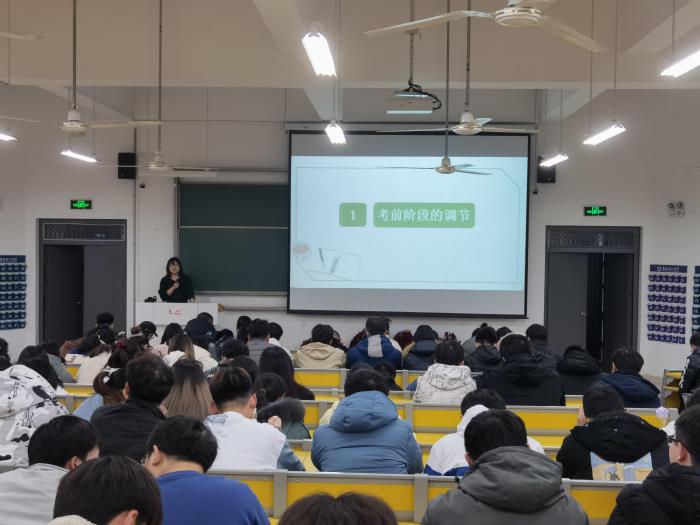 王冰洁老师围绕考前放松技巧,针对考前的焦虑情绪,引导大家正视考试焦虑,以身体锻炼和精神放松来缓解情绪。并通过放松训练让同学们掌握放平心态的方法。