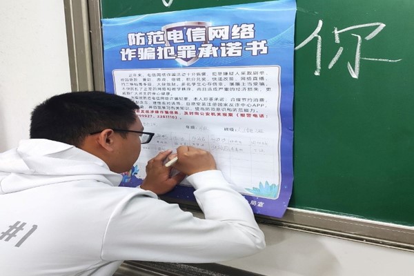 11月27日晚,人工智能学院组织学生在明理南103和明理北101教室举行防电信诈骗签名活动,大家在防范电信网络诈骗犯罪承诺书上签字,通过签名的形式参与到防电信诈骗行动中,使大家认识到“反电诈”重要性和学习反电诈的必要性,在学院内营造了浓厚的“反电信诈骗”活动氛围。