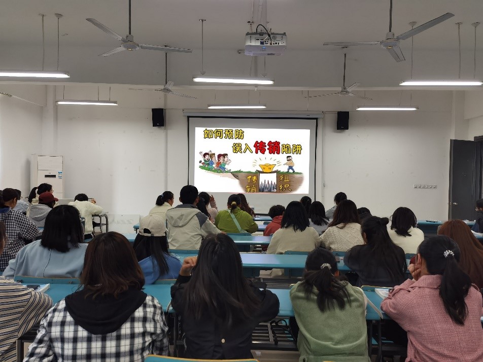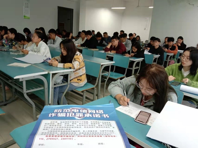 10月23日-11月7日,全院各年级组织召开“精准识别骗局,做理智大学生”主题班会。辅导员、院学生会干部、班干部向同学们普及防范校园电信诈骗、防范传销进校园的案例和知识,引导广大同学擦亮眼睛,发挥主动性,把抵制诈骗、传销的客观要求转变为同学的自觉行动。