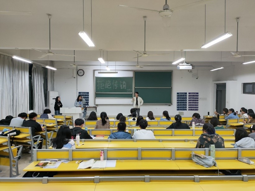 10月23日,外国语学院在崇智楼B233举办“远离传销,避免受骗”安全知识讲座。学院分管学生工作领导采用幻灯片和知识讲解相结合的方式,从传销定义、当前形势、传销特征、网络传销、传销危害、识别传销、远离传销和传销处置八个方面进行详细的宣讲。他强调,大学生要深化对传销危害的认识,提升拒绝传销、防范传销的意识,以避免在今后在工作和生活中上当受骗,并为同学们播放了“如何预防误入传销陷阱”的小视频。各年级班级团支书、宣传委员、生活委员聆听了讲座。