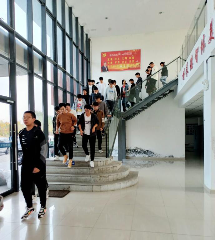演练前,学院制定了详细的演练方案,做好路线规划和人员调配,确保演练有序进行。随着警报声响起,在各楼层疏散人员的引导下,正在实验室上课的师生们迅速有序的安全疏散在楼外,自觉清点人数,200余名师生耗时2分钟全部安全疏散完毕,整个过程紧张有序,出色的完成了本次演练任务。演习结束后,学院党委副书记刘中廷针对此次演习活动进行了总结,对演练中出现的问题和不足提出了整改方法。