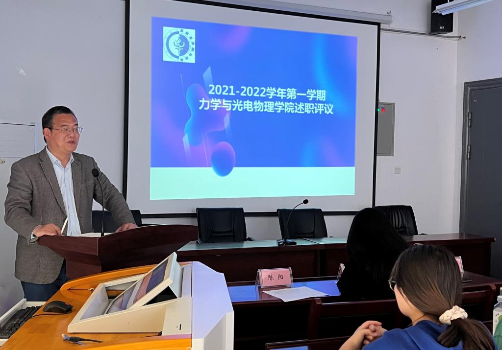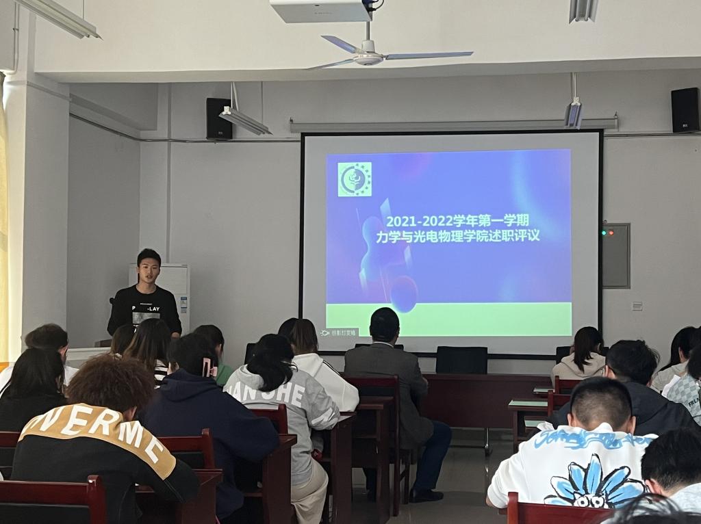 为加强学院学生会组织建设,3月15日,力物学院团委于学院楼A323报告厅开展2021-2022学年第一学期力物学院学生会工作人员述职评议大会。学院党委副书记孙东升、学院辅导员冷金兰、校学生会主席团成员以及学生代表参加了评议会。院团委副书记陈阳主持会议。