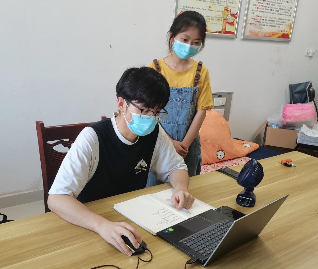 志愿者翁骏驰线上授课(摄影:吴家亮)