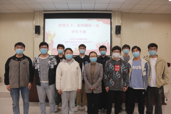 在做好疫情防控工作的基础上,力物学院通过小范围召开学生代表座谈会、线上线下相结合的培训交流会等形式,进一步增强学生干部的思想认识和责任意识,强化学生的纪律意识和安全意识,为做好新冠疫情防控工作及各项学生工作顺利开展打牢思想基础。